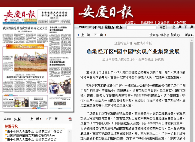 本报讯 1月18日上午,作为迎江区临港经济开发区的“园中园”,东坤创新科技产业园正式开园,首批十余家科技型企业签约入园,实现产业集聚发展。